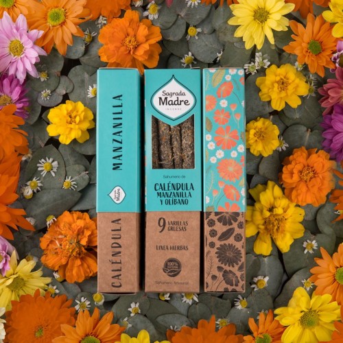 The incense works as a natural air purifier while spreading a feeling of love and wellbeing in your space. Many users burn a stick in the evening to mark the transition from work to relaxation, where calendula's creativity gives way to chamomile's peace.